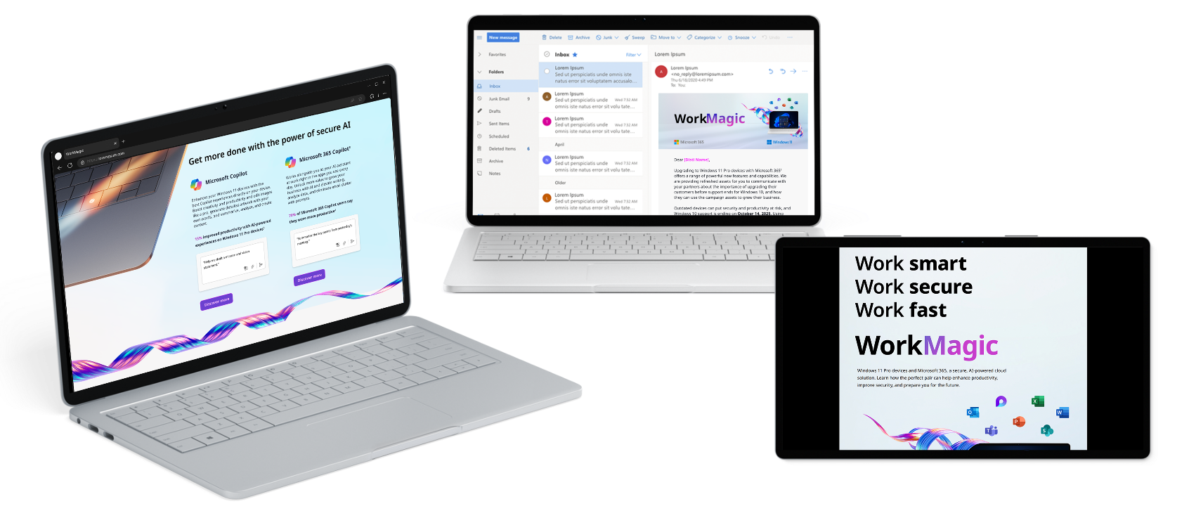 Устаревшие ПК подвергают предприятия риску. Поскольку поддержка Windows 10, вашим клиентам нужна безопасная и современная технология. На сайте активы кампании предоставляют информацию, необходимую для того, чтобы помочь вашим клиентам перейти на Windows 11 Pro и подключить Microsoft 365.